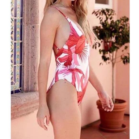 RED TROPICAL FLORAL PRINT ONE PIECE