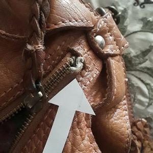 @suzetteyoder I sent some pics...zipper that opens purse...needs like something at the end...so it doesnt come off...side pocket needs to be sewn, dirty inside and water stain on outside... the long strap the medal I think needs to be welded if to wear it like original on both sides....check out rest of comments...just in case I missed something...tks for interest..