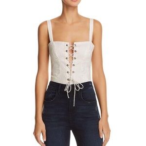All laced up. The Poppy Corset Bodysuit was designed on a soft cotton jesery complete with a flattering silhouette, a straight neckline, wide set straps and sultry lacing details. Pair with high-waisted jeans for a slimming look.