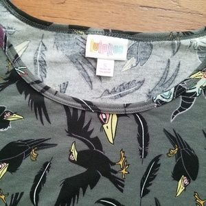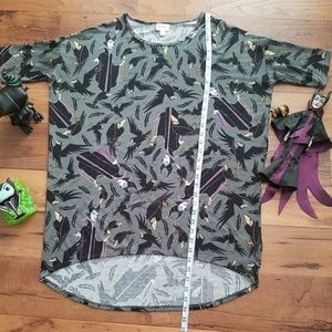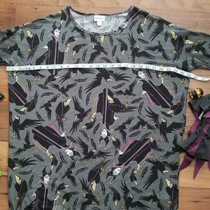 Beautiful Lularoe Maleficent Irma from the Lularoe first run Disney Villains line. It was definitely my unicorn. Worn about three times but now it's slightly too big. Irmas run larger so use measurements Small is (8-10) depends on how you want the Irma to fit. I was so hesitant to sell it but I haven't used it in well over a year now. I still have the tag but it won't be attached. It's an older design first run. Other items not for sale