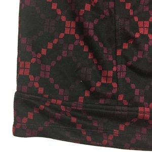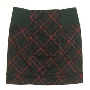 New w tag. Wide elastic on sides of waist. Pull on skirt. Soft fabric. Color: red, purple, black. Material: Polyester, rayon, spandex.