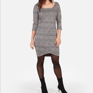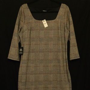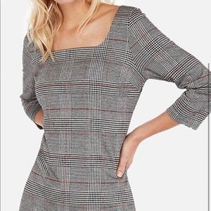 NWT EXPRESS Plaid Square Neck Sheath Dress