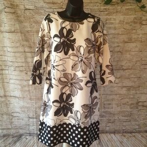 Floral & Polka dot 3/4 Sleeve pocket shift dress