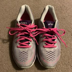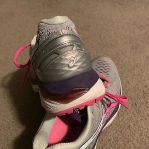 Used lightly worn excellent condition ASICS women’s gel Kayano 23 silver/pink running shoes size 7