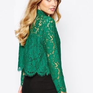 New long sleeve shirt green lace can be worn as a blazer as well without buttoning down.