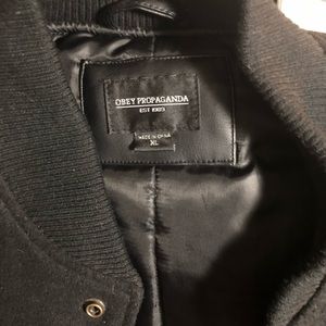 Men’s obey letterman jacket.
