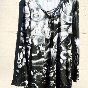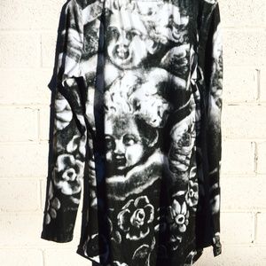 Cherub Floral Tunic Blouse Angels Putti Cupid Top