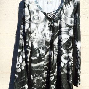 Introducing my new line of clothing. Thanks for checking. The print is created from my high resolution photographs of my sterling silver antiques that we repurpose to make jewelry. This motif is from a Gorham antique. This has a gorgeous front and back print in black and white , 90% cotton 10% poly.