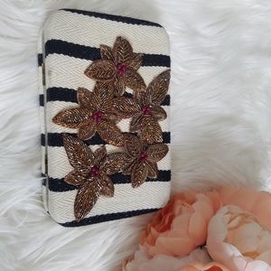 Black and cream striped clutch with embroidery