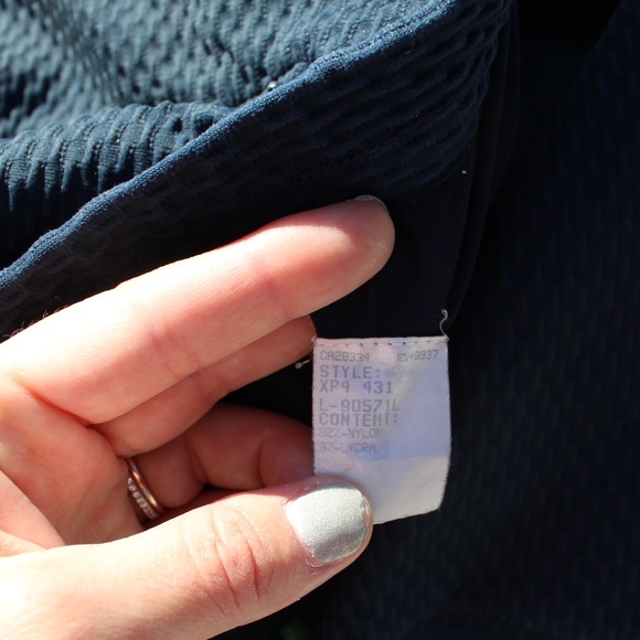 In Excellent used condition Tail Tech Performance Navy textured skirt with short lining for a conservative look. Extremely soft and stretchy. 2 front zipper pockets and 1 back square pocket. Pull on style