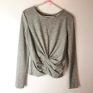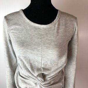 Lightweight grey sweatshirt with twist /knot front design and stitching down chest. Trendy and very stylish