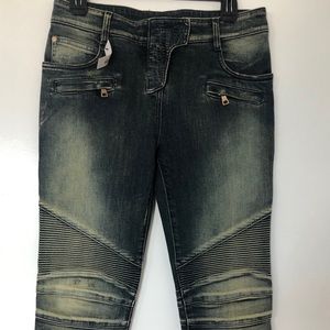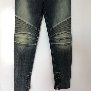 Crafted in Italy from blue, these Moto Skinny Jeans from Balmain feature a front button fastening, belt loops, side zipped pockets, rear pockets, zipped cuffs and ribbed knee panels.