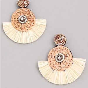 Rattan discs with raffia fan. These earrings screams “summer vacay.”