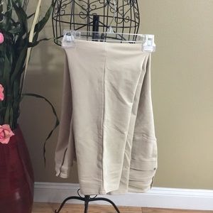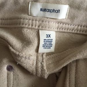 Size 3X. Tan. 95% Cotton/5% Spandex Material feels like Extremely Thick Sweatpants. In a Trouser Style. Never Worn. NWOT. (Shirt sold separately)