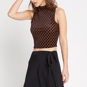 Classy yet simple sleeveless silky crop top/blouse is unlined with back keyhole opening and button neck closure- Black portions are soft raised velvet