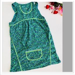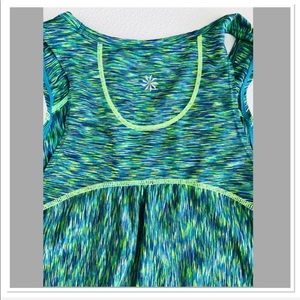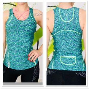 Athleta POP SPACE DYE burnout running tank Fiji Green Activewear STRETCHY TOP with back pocket. Super cute and fitted tank with reflective straps on the sides. Perfect for a run or a workout, leisure wear.