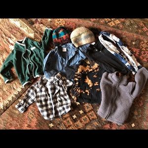 20 items total. Size labels vary most everything fit 9mo-20mo. Some shirts have stains/tears but we wore like this since they aren’t that noticeable. One cardigan has a small Hole. can be stitched. See photos. Brands: Zara, old navy, Joe fresh, beau loves, American apparel, Jumping bean, Carters, small handmade shops.