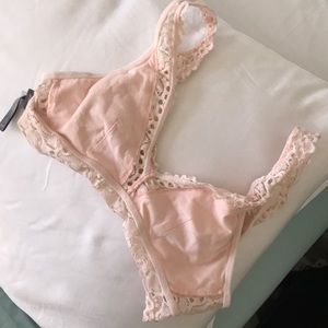 It is light pink & lace. Super comfy because of the cloth interior. Also super cute & sexy. Easy to match with lots of outfits because of the pastel color.