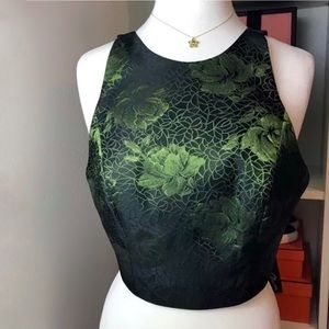 Alice & Olivia floral crop top green matte black zipper back tops. New with tags.