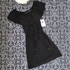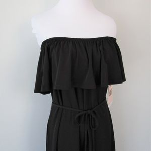 NWT Black Off Shoulder Ruffle Popover Midi Dress
