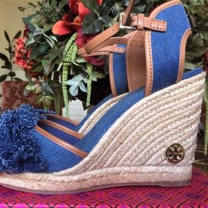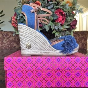 New $250 Tory Burch Shaw Denim Espadrilles 10.5-11