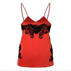 Relaxed silhouette, V-neck, black sequins and beads embellished lace, fully lined, 100% silk, size M,