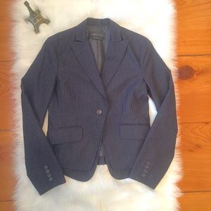 BCBG Max Azria “Angelea” blazer in navy with white pinstripes. Size Small.