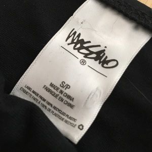 This is a super cute black bikini set that is all black! It has a flowing top and plain black bottoms with holes on the sides as pictured. The bottom is a small and the top is a medium. I only wore them a couple times and outgrew the bottoms so thought I’d just sell as a set. Thank you for looking!!
