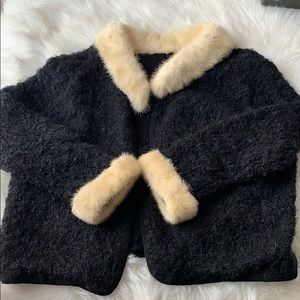 Vintage wool seater with platinum mink around the collar and sleeves beautifully lined with a decorative silk lining rare one of a kind find that would add elegance and class to any wardrobe. Pair it with jeans a dress or slacks.