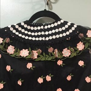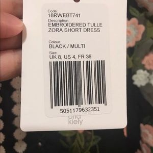 New Orla Kiely Zora embroidered tulle dress in size 4. Sheer sleeves with a scalloped hem. Hidden zipper in back. Ruffles in front.