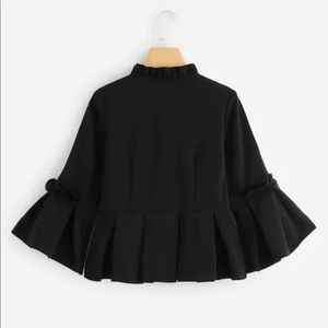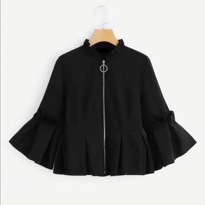 NWT Zipper Ruffle Bell Sleeves Jacket Blazer in Black.