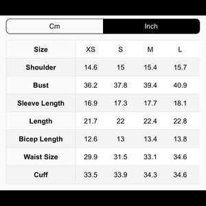 @littlegoobie Hi, pretty good weight to this. It’s not a winter jacket and not too lightweight. Sleeves are 3/4. Sizing chart for reference in the last pic. 🧡amourOC