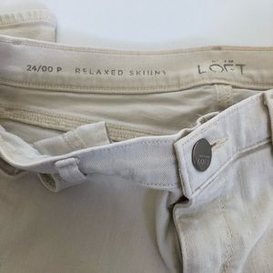 Cream colored Loft distressed petite, relaxed-skinny jeans. Gently worn. 93% cotton, 6% elastrelle, 1% spandex. No trades please.