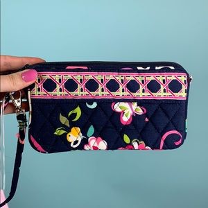 NWT Vera Bradley Wristlet Wallet - Breast Cancer Print! Navy with pink butterflys & green leaves & flowers!