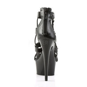 6" High Heel, 1 3/4" Platform Gladiator Cage Shoes. Metal Studded Detail and Back Zipper. Black Faux Leather.