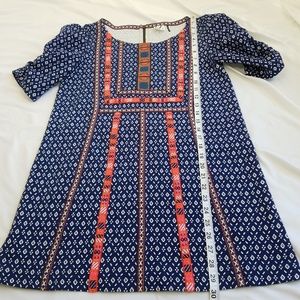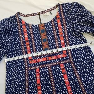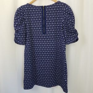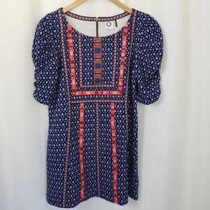 Akemi + Kin for Anthropologie Seva tunic. Size Small. Gorgeous blue & white print swing top w pink embroidered detail, exposed back zipper. Fabric has some stretch.