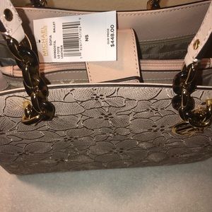 Michael Kors Large Sofia Leather Tote! Dimensions-wide 13” height 10” Depth 5”, Flower print, Color-Ballet