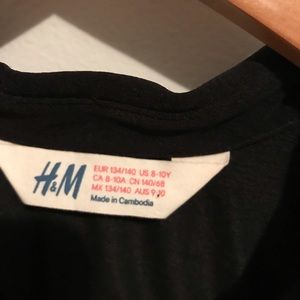 H & M Girls Black Sheer Button Down Top Size 8. In excellent preowned condition with no issues to mention. Size say 8- 10 years. And measures as follows: armpit to armpit measures approx. 15 inches and shoulder to bottom hem measures approx. 25 inches. It has lace on the shoulders and is sheer (would need a tank or cami underneath)