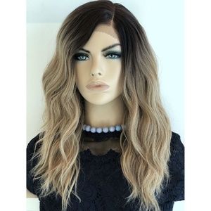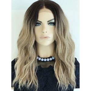 Beautiful black roots and ash blonde ombre Lace Front Wig. Made with heat resistant synthetic fibers so the hair can be styled with a curling iron or flat iron under 300F° degree. The cap is adjustable for easy wear. The hair is partially hand-knotted strand by strand onto the lace portion which mimics the look of a natural scalp and is also more comfortable and Breathable.