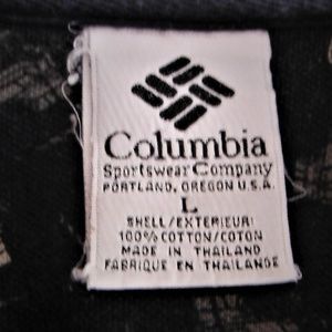 Very unique golf cart print on shirt, Columbia embroidered logo on sleeve and Golf tag on side of shirt