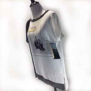 🦋Zara Ballerina Mixed Media Gold Dressy Blouse