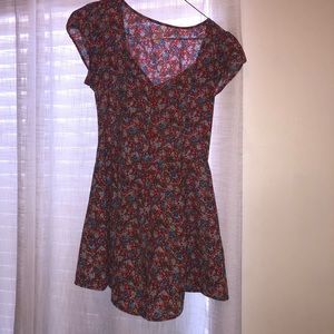 Flowy around leg area, but fitting in wait to bust; Button up; low cut neck line