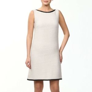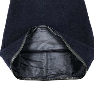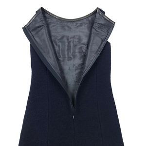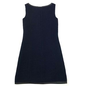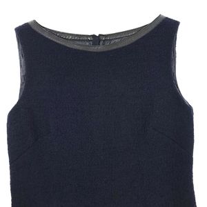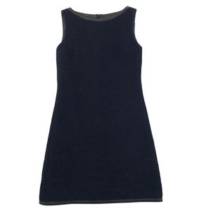 Prada Women's Navy Blue Wool Black Leather Trim Sleeveless Shift Dress 38 ITALY