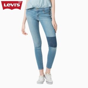 Skinny light wash denim from Levi’s. Patchwork detail at knee area. Size 28. Waist: 13”, inseam: 29”, rise: 8.5”. Excellent condition. No flaws, no stains.