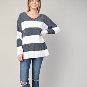 NWT CHENILLE V-NECK BOLD STRIPE SWEATER