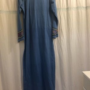 Beautiful Indian cotton embroidered maxi dress in jaybird blue - size small. length 56”, waist 25-36”. great for dressing up or down ♥️ these retail for heaps given the 100% indian cotton and detail thru out 〰️