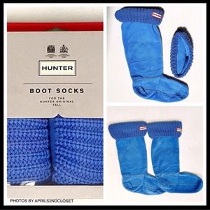 HUNTER ORIGINAL TALL CUFFED BLUE BOOT SOCKS A2C
