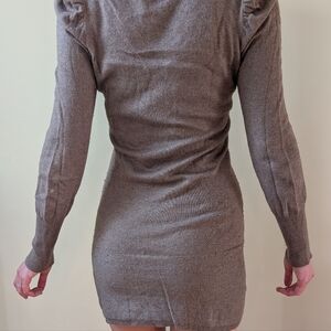 Sinéquanone Paris wool sweater dress in light brown. Has slight ruffle in the shoulders, V neck. Very warm and elegant. Purchased it in Paris for 80 euros.
