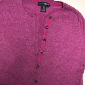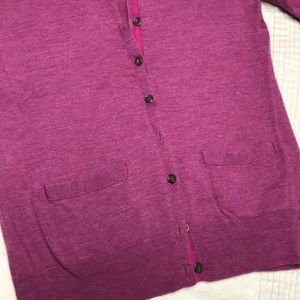 Banana Republic extra fine Merino wool cardigan sweater. Buttons up front. Two pockets. Size small. Excellent preowned condition. Heather plum/ purple color.