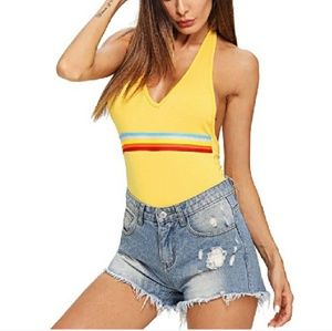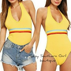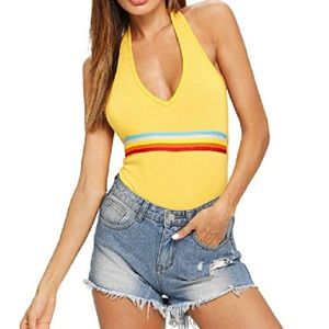 🆕⭐Yellow retro rainbow halter bodysuit